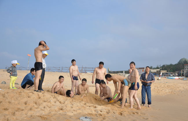虽然到了深秋,海风习习,海水也有一丝丝凉意,参与活动的球友会平台总部50多名员工纷纷下海畅游,好不惬意。不少参与活动的员工家属也按捺不住活动开来。大家边游泳,边踏浪,也有的在沙滩上捡贝壳,孩子们拿着铲子挖沙,一个个玩得不亦乐乎。