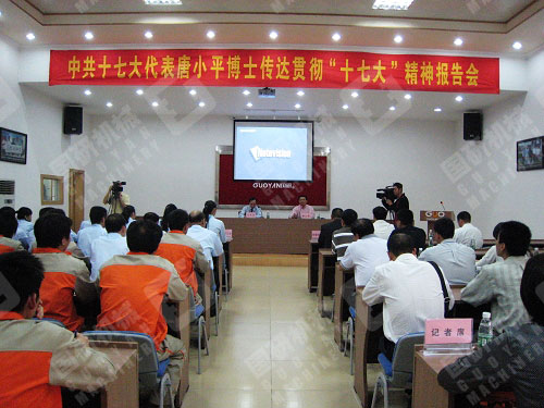 11月14日下午,阳光灿烂,秋风送爽,在喜庆的锣鼓和欢声笑语中,座落于广州市天河区珠吉街的广州市球友会平台设备制造有限公司迎来了党的十七大代表唐小平博士。唐小平代表面对国研公司党支部全体党员和公司全体员工,作了一场丰富详实、精彩生动的报告。珠吉街党工委、办事处领导班子成员、街属各支部书记、以及天河区委组织部、区委宣传部的有关负责同志应邀出席了报告会。