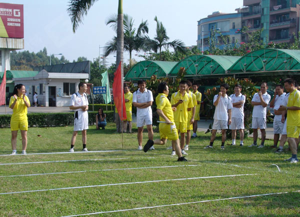 球友会平台全体员工在公司举办的运动会上参加接力比赛